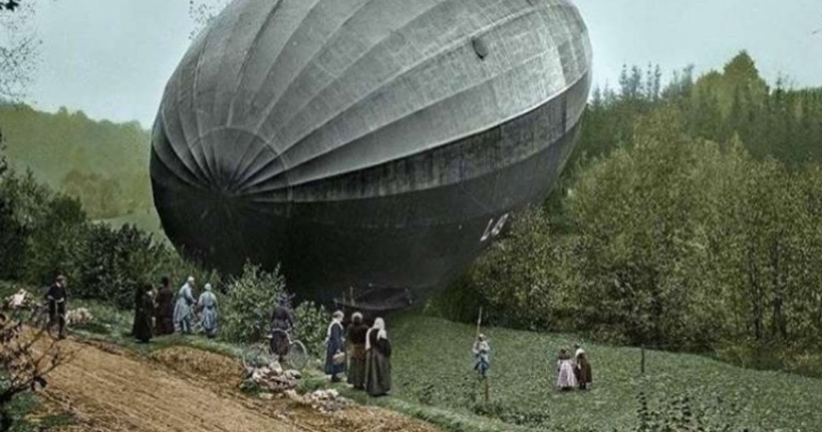 Фото, сделанное в момент падения немецкого дирижабля «Граф Цеппелин» в Бурбон-ле-Бен, (Франция, 1917 год).