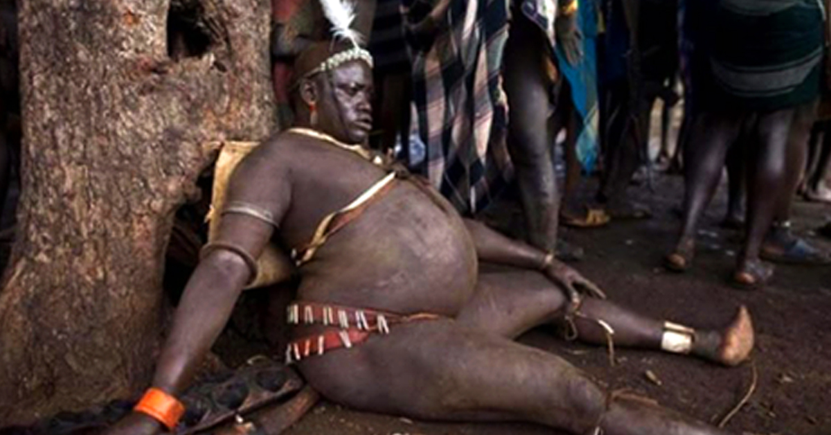 Вы все еще качаете пресс, бицепсы, трицепсы и до умопомрачения занимаетесь на беговой дорожке? Тогда взгляните на этих представителей сильного пола племени боди, обитающего в Эфиопии. Этим ребятам не до ваших тренажерных залов и диет, они стремятся к высокой цели — стать самым красивым, восхитительным и привлекательным мужчиной среди своих, а значит вырастить самый большой живот! Ведь это сулит красавцу-мужчине не просто статус настоящего героя, но и всяческие привилегии.