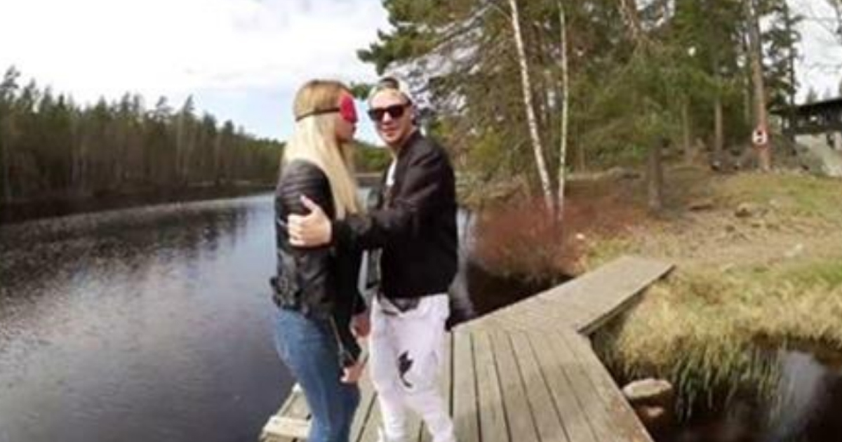 Молодой человек был обвинен своей подружкой в том, что он уделяет ей слишком мало внимания и редко удивляет сюрпризами, и он решил сделать ей сюрприз, который она запомнит надолго! Он завязал ей глаза и привез в красивейшее место, где сделал сюрприз, после которого она, вероятно, бросит его.