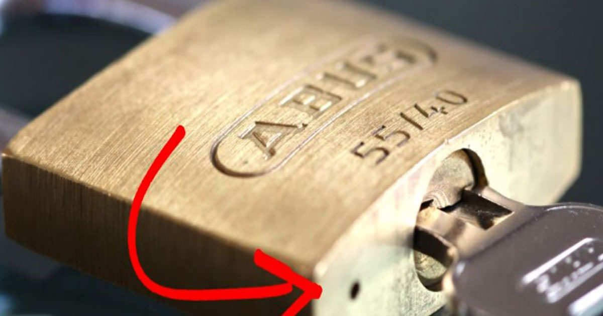 10.Маленькая дырочка на замке. Оказалось, она нужна для того, чтобы выводить лишнюю жидкость изнутри системы замка.