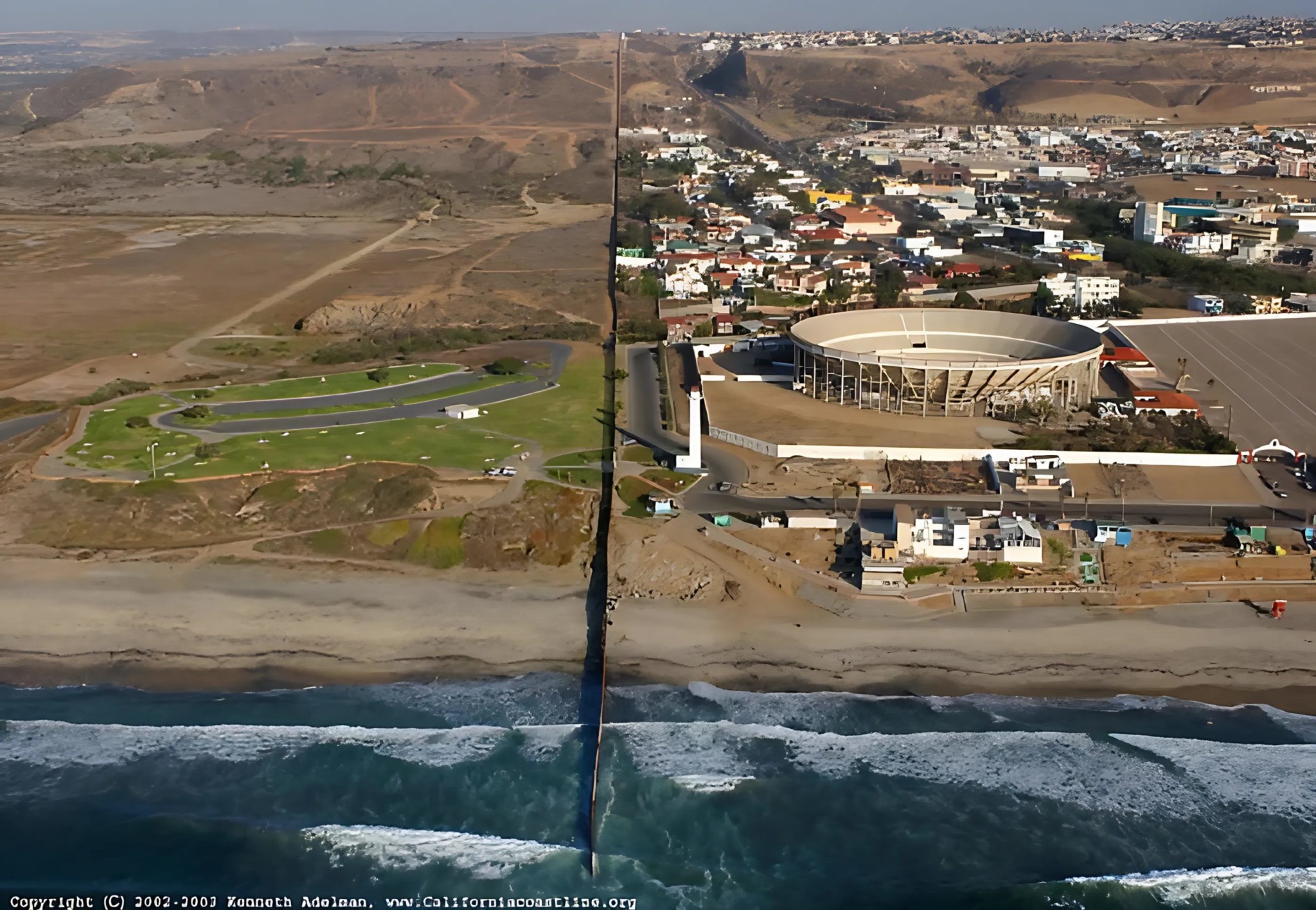 Завораживающее зрелище! Что, как не граница между двумя государствами, способно наглядно продемонстрировать