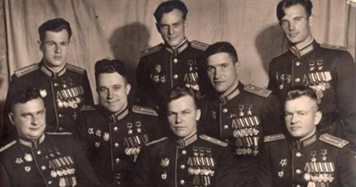 Вечная слава! 1-й ряд слева направо: Дважды Герой Советского Союза летчик-истребитель Дмитрий Борисович