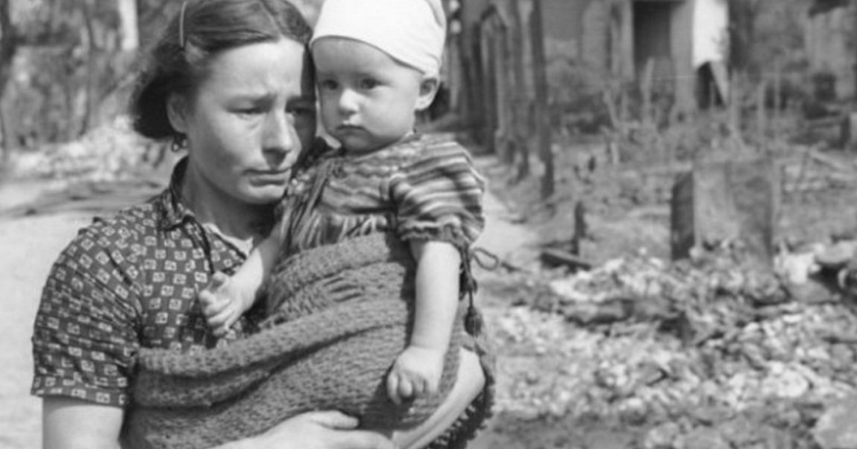 Вижу — бежит по площади женщина с девочкой на руках. Я ей кричу: “Сюда! Сюда! Прячься!” Она ничего не слышит и продолжает бежать. И тут один из самолётов сбросил бомбу прямо на площадь. Женщина упала и ребёнка собой прикрыла. Я, ничего не помня, бросилась к ней. Вижу, она мёртвая. Тут милиция подоспела, женщину забрали, хотели и девочку взять.